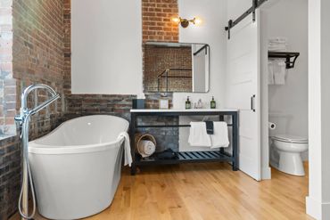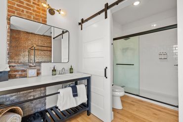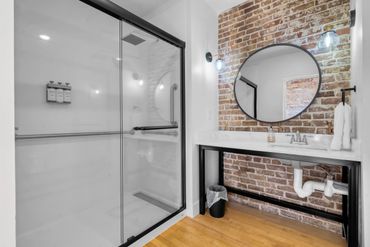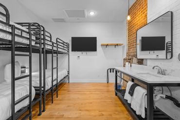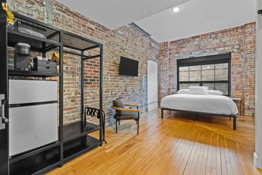 The Literary Hotel is a restored 1915 Auditorium with original hardwood floors and exposed brick walls complemented by industrial farmhouse style and clean black & white decor. Offering 11 guest rooms each with a different floor plan, the hotel sleeps 33 guests total. Our convenient curbside parking by the lobby entrance and complimentary snacks and beverages in your room refrigerator, your loved ones are sure to rave about The Literary. Get a good night’s sleep on our Westin Heavenly Mattresses in our spacious oversized rooms. We are pet friendly and have bike storage for riders.